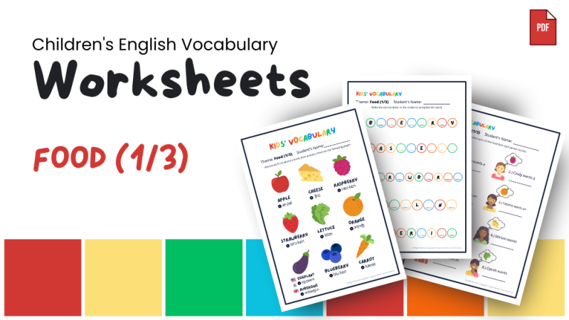 These worksheets provide food vocabulary words used in daily English conversations (includes native speaker audio for each vocabulary).