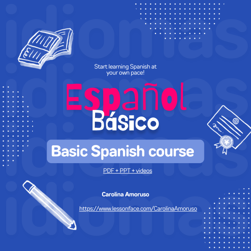 In this self-paced course you learn at your rhythm! It covers basic concepts of the Spanish language from scratch: from numbers and colours to conjugations of verbs in the present tense. The complete course includes a PDF, a PowerPoint presentation (both with explanations, charts, pictures and examples), and a series of explanatory videos. Each topic in the PDF or the PowerPoint presentation has a video that illustrates the uses of the language.