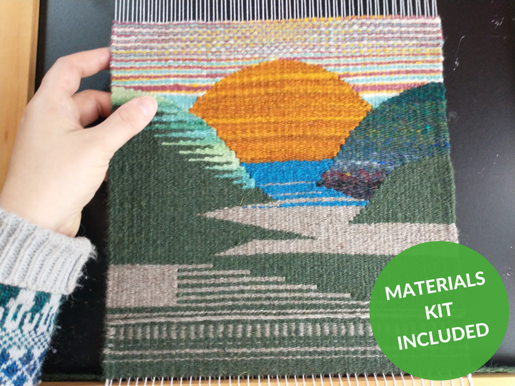 Curious about how tapestries are made and ready to try your hand at pictorial weaving? This most ancient form of textile creation is rich with history and invitation for creative expression. Master weaver Laura Berlage will take you on a multi-week journey into the magical world of tapestry, where you will learn to transform warp and weft into a peaceful sunset landscape, measuring approximately 10x10 inches. Starting with a simple frame loom, focus will be given to establishing good tapestry technique and learning the process for horizontal and angled forms—beginning with foundational geometrics and building into more naturalistic forms. Fundamentals of cartoon creation and shading will also be covered. Unlock the mystery of how tapestry is made and add these skills to your expressions in fiber, infused with stories and myths from the tapestry world. Join us for this welcoming online class!