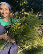 Gardening host Bethany Joy Hebbard is a knitter, sewist, and dyer. Her husband is a permaculture-trained farmer, and together they keep a large garden on their suburban homestead in Jamestown, North Carolina. Bethany has a strong love of local fibers and dye traditions, and teaches classes on cultivating dye plants, fresh-leaf indigo, and more.