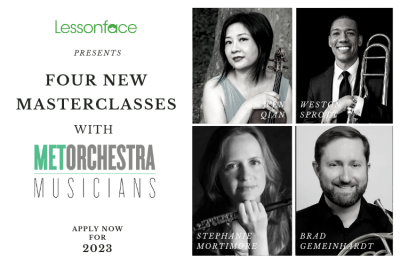 Lessonface is proud to announce the 2023 Masterclass Season with the MET Orchestra Musicians, with four live online masterclasses scheduled for January through April 2023. The 2023 season features coaching by MET Orchestra Musicians Wen Qian, Weston Sprott, Stephanie Mortimore, and Brad Gemeinhardt.