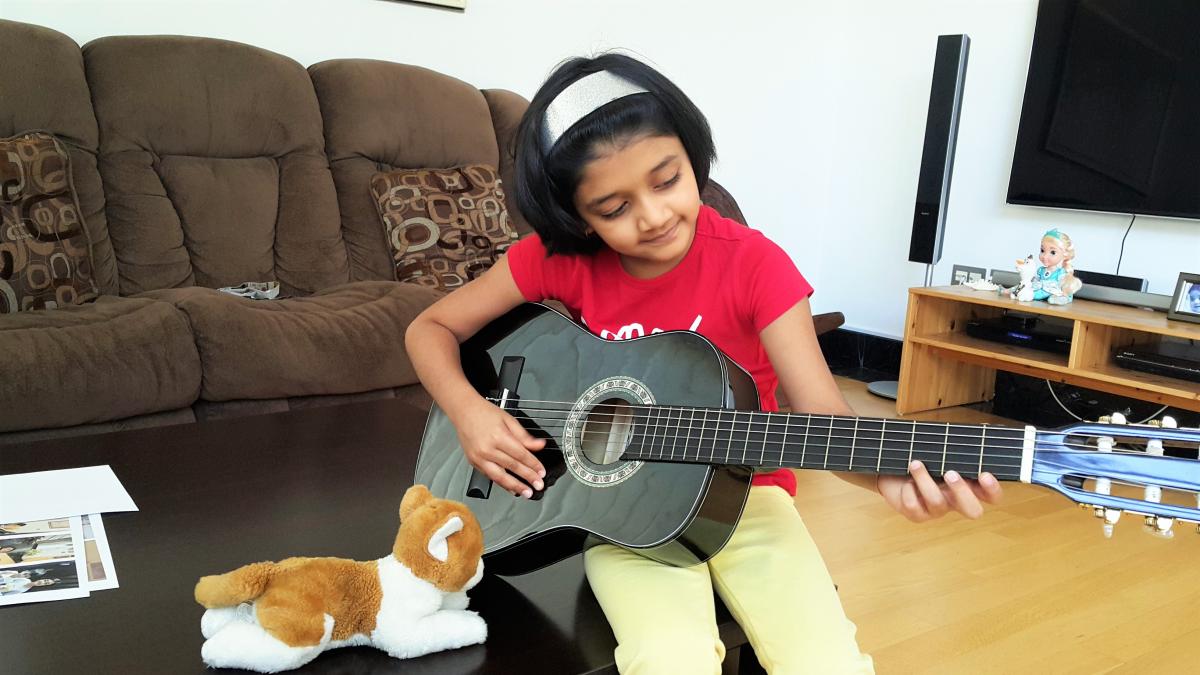 Nandita, age 6, loves getting the hang of a new song.  Her mom stays in the room while she practices and helps out if she doesn't understand something.