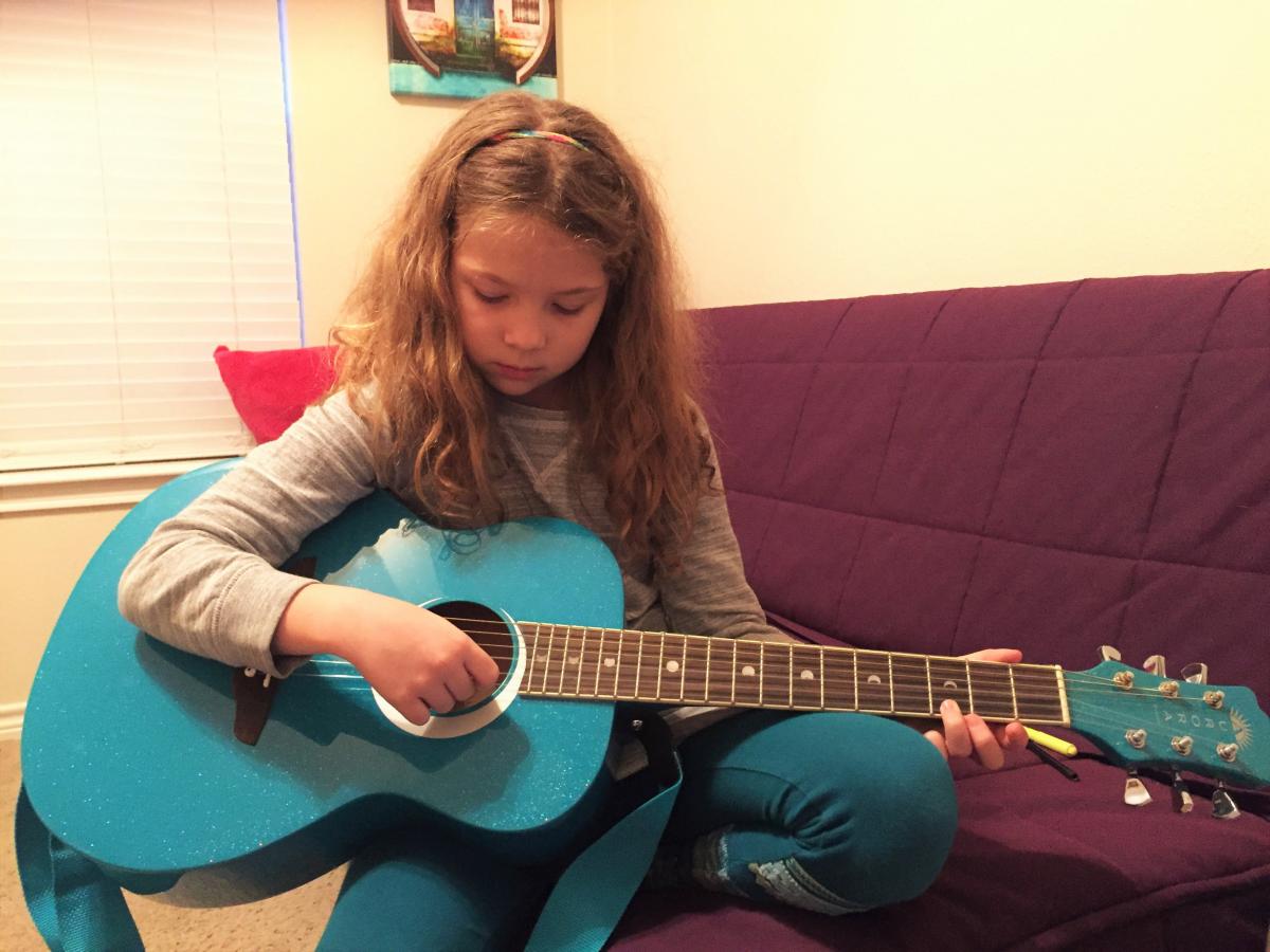 If you want to reward your child for her dedication and musical growth, take her to a concert, buy her a new song book, or consider a new guitar for reaching a big milestone.  Be careful of non-music incentives for practicing or achieving music goals.  Rewards like money or gifts can distract from the internal gratification of learning to play a song and growing musically.  They can make practice seem like a chore that is done for the reward.  The principal reward for practice should be the music itself.