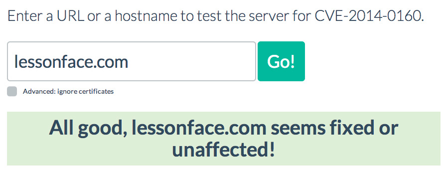 Lessonface is safe from the heartbleed bug, but it's still a good idea to change your password (here as on any site that has the prefix https in its URL).