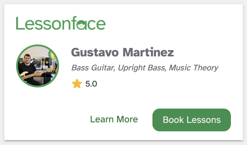 We asked 2025 Lessonface Teacher of the Year in Bass Guitar, Gustavo Martinez, to share insights into his journey as a musician and educator. In this Q&A, Gustavo reflects on discovering the bass guitar at a young age and how it became a lifelong passion, describes how he creates a focused and high-quality online teaching environment, and shares the deeper value he believes music brings to life beyond professional goals. He also discusses the gear and apps he recommends for effective practice and lessons, encourages continuous musical growth, and emphasizes enjoyment and connection as the heart of playing bass.