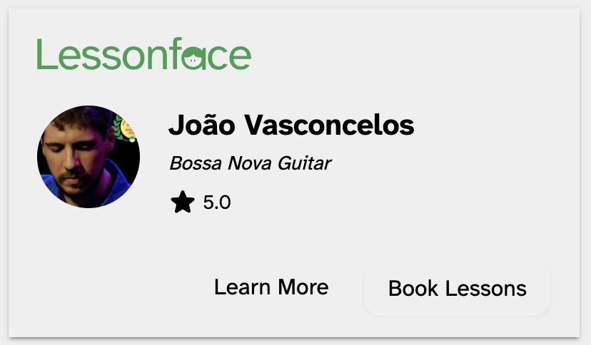We asked 2025 Lessonface Teacher of the Year in Bossa Nova Guitar, João Vasconcelos, to share his perspective on teaching this rich and expressive musical style. In this Q&A, João reflects on growing up immersed in bossa nova through his family, the importance of deep listening in developing an authentic feel for the genre, and the thoughtful, well-equipped home studio he uses for online teaching. He emphasizes fluidity, musical flow, and learning directly from the masters as key elements in helping students play with confidence, nuance, and joy.