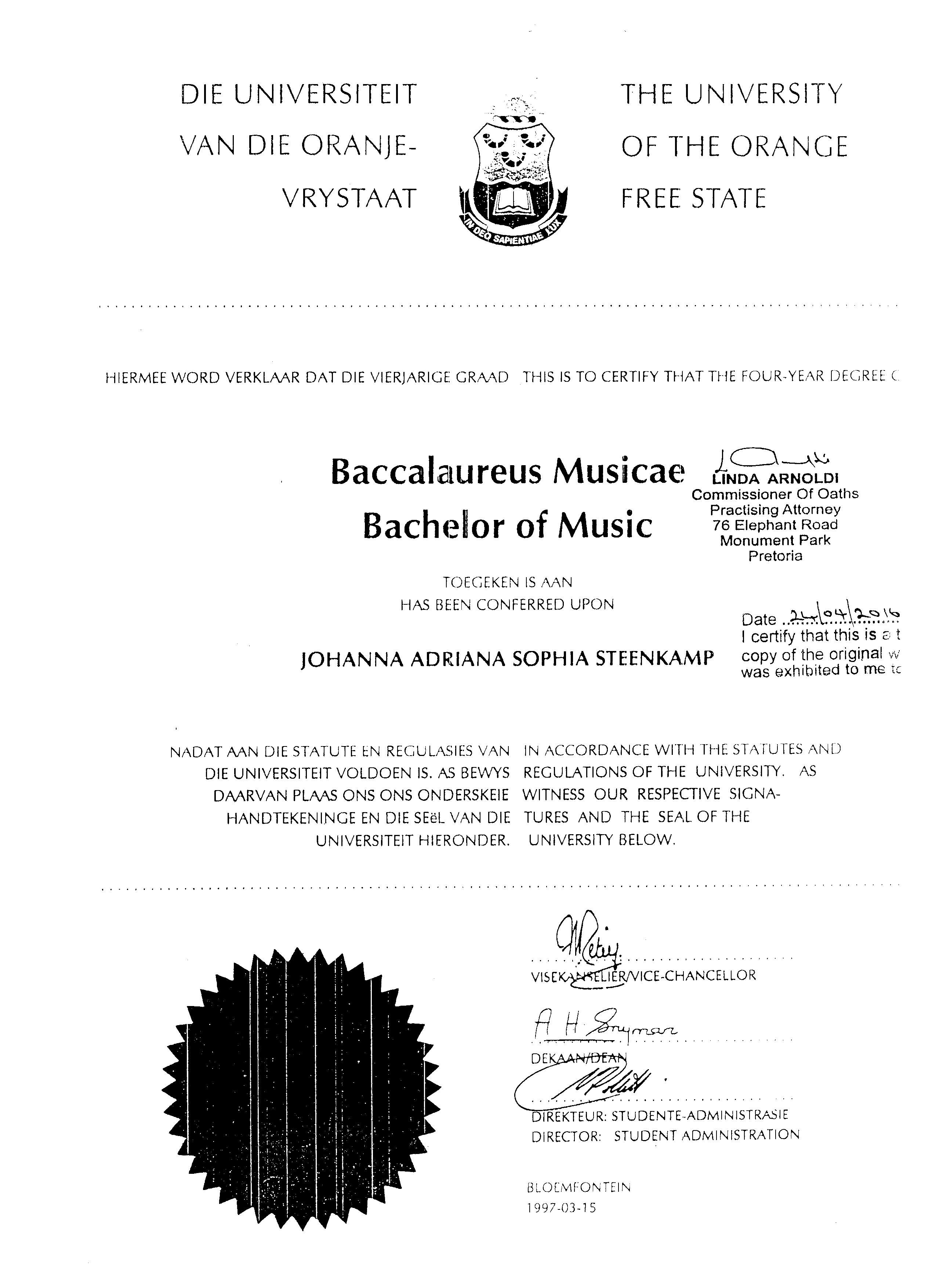 Adri started playing the violin at age six.  She participated in numerous orchestras during her school career, of which the Northern-Transvaal Youth Orchestra, TED Youth Orchestra (now Sinfonia Juventi), as well as the National Youth Orchestra. She began her B. Mus studies (violin) at the University of Pretoria (1992) and received tuition from Prof. Alan Solomon as well as Prof. Zanta Hofmeyr. She completed her B. Mus degree in violin, music history and music theory in 1996 under the legendary mentorship of the late Prof. Derek Ochse at the University of the Free State. During this period Adri actively played violin in the Free State Symphony Orchestra, Consortium Musicum Chamber ensemble as well as the National Chamber Orchestra. She started her teaching career in Bloemfontein at the Free State Musicon during 1996 where she also conducted and trained the beginner string orchestra. Besides from teaching privately she has also taught violin, recorder, keyboard, guitar and piano at Universitas Primêr (Tjokkies) in Bloemfontein. She is an accredited Unisa Music Teacher as well as a member of the South African Society of Music teachers (SAVMO). Adri accepted the position as violin lecturer for music as subject at Hoërskool Waterkloof in February 2015. She is the founder of the Klofies Arco Musicum String ensemble which performed with great success at Centurion Arts Festival, The Atterbury Theatre as well as The Brooklyn Theatre during 2015. Adri also taught violin, piano, and keyboard at Stella Musica Centre at Laerskool Elarduspark. She was appointed as Music Educator at Irene Primary School in 2017-2021. She currently holds the position as instructional designer and coordinator at a private educational institution.