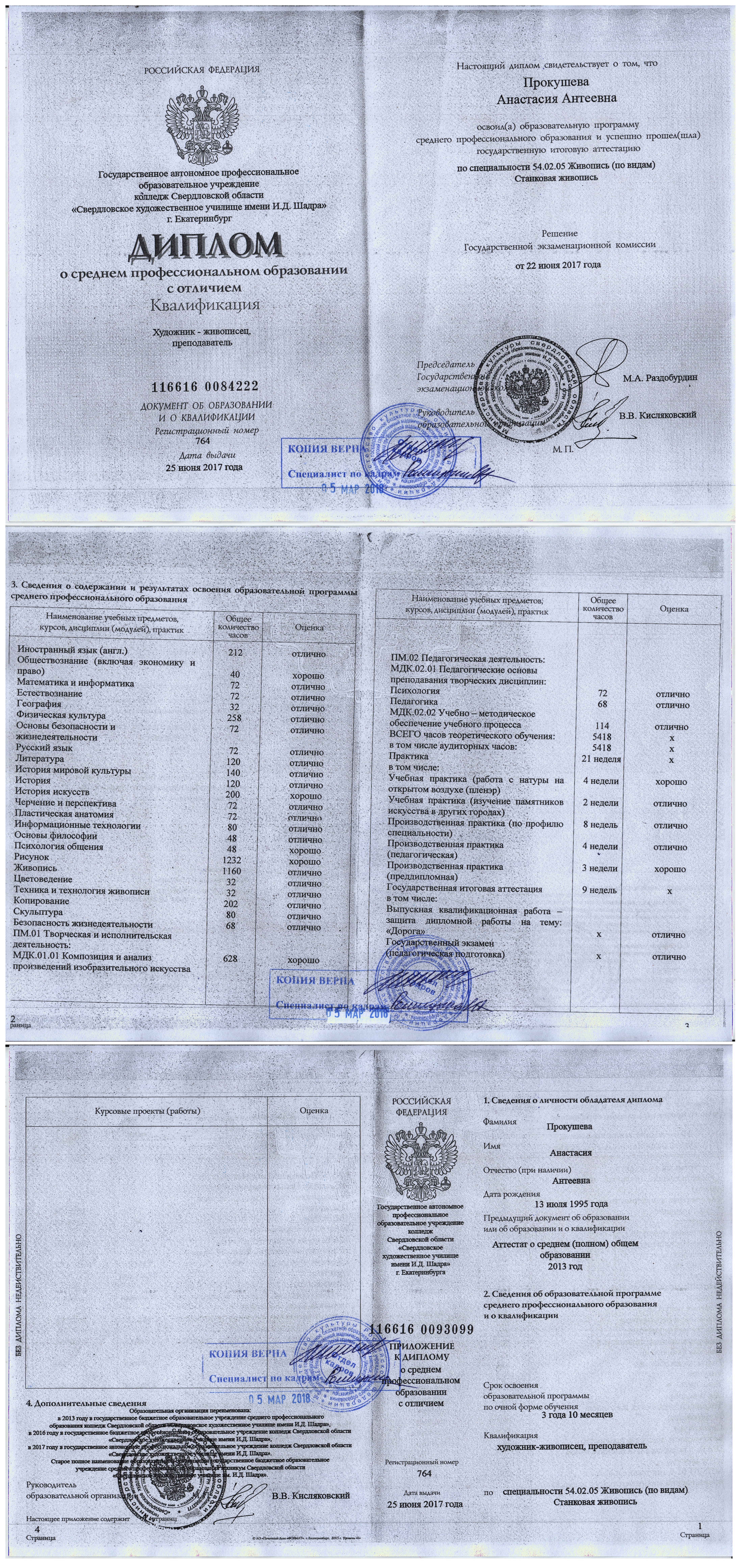 1.5 years, graduated with honours, Diploma in Fine Arts (Easel Painting),