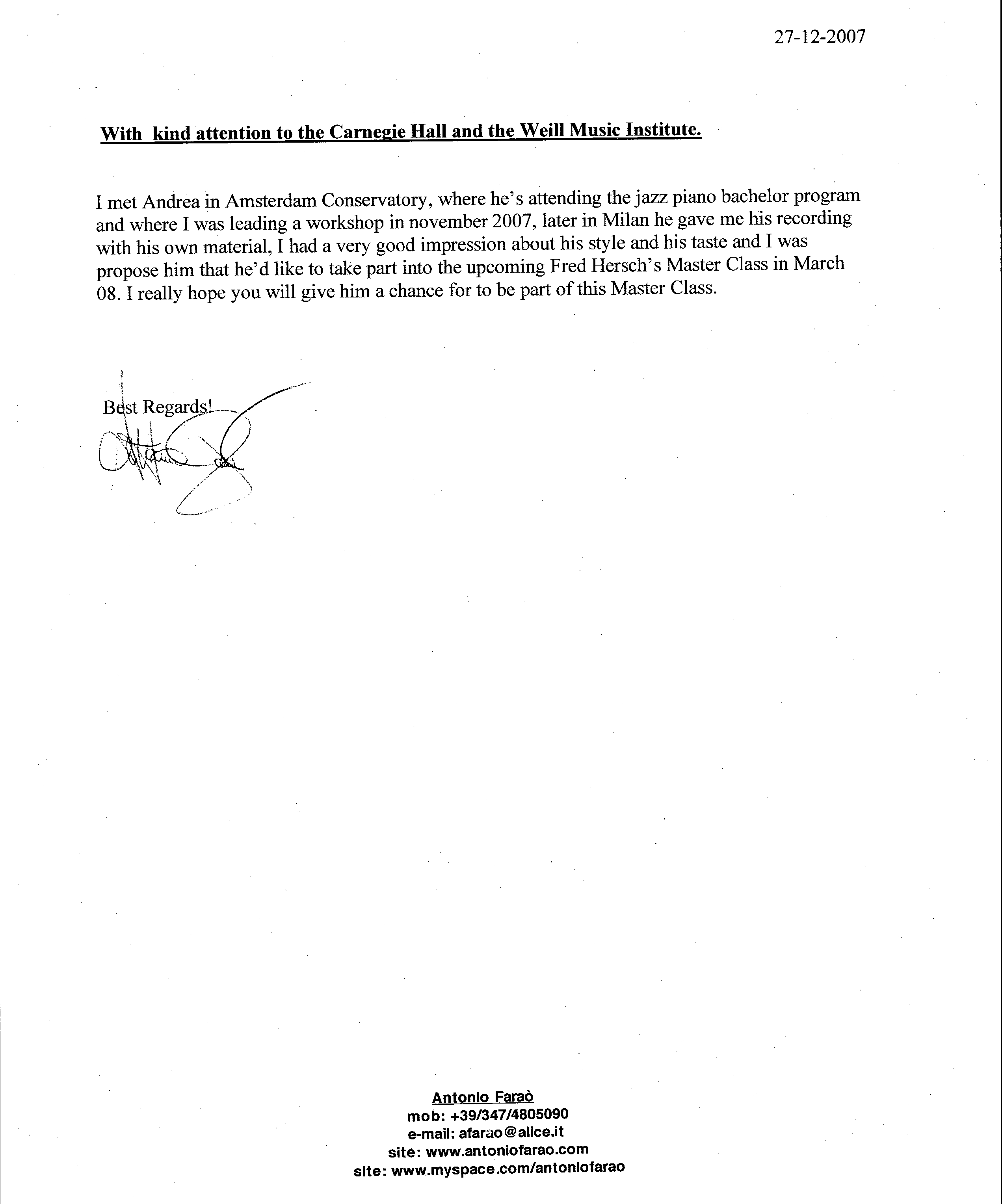 I also received recommendation letters from world-renowned pianists such as Antonio FaraΓ².