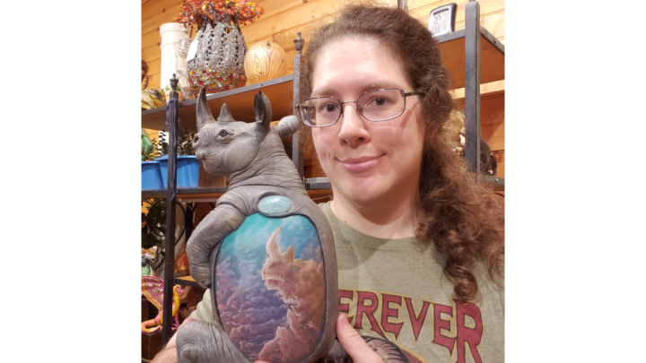 Cara Bevan is a self-taught, professional artist who's been painting and sculpting since 2007. Growing up on an animal rescue farm and nature preserve gave Cara a deep respect for animals and nature. Her work focuses on creating life-like animals made from gourds, wire, clay, and other unusual materials. She learned how to create from gourds from her grandmother, Yvonne "Sam" Spinks, who grew many of the gourds she used. Cara uses a combination of wire and air-drying clays to add onto gourd armatures that she assembles together. Every feather, scale, hair, and detail is sculpted one by one, then each sculpture is hand-painted with acrylics. No detail is spared when it comes to Cara Bevan's fascination with nature. To see her work, visit her artist's website at www.carabevan.com.