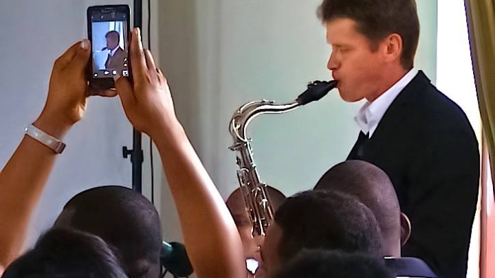 He teaches saxophone at UNPHU University in Santo Domingo and also offers instruction on modern wind instruments like the AKAI EWI, EMEO, and Travel Sax—cutting-edge tools used by leading modern musicians.