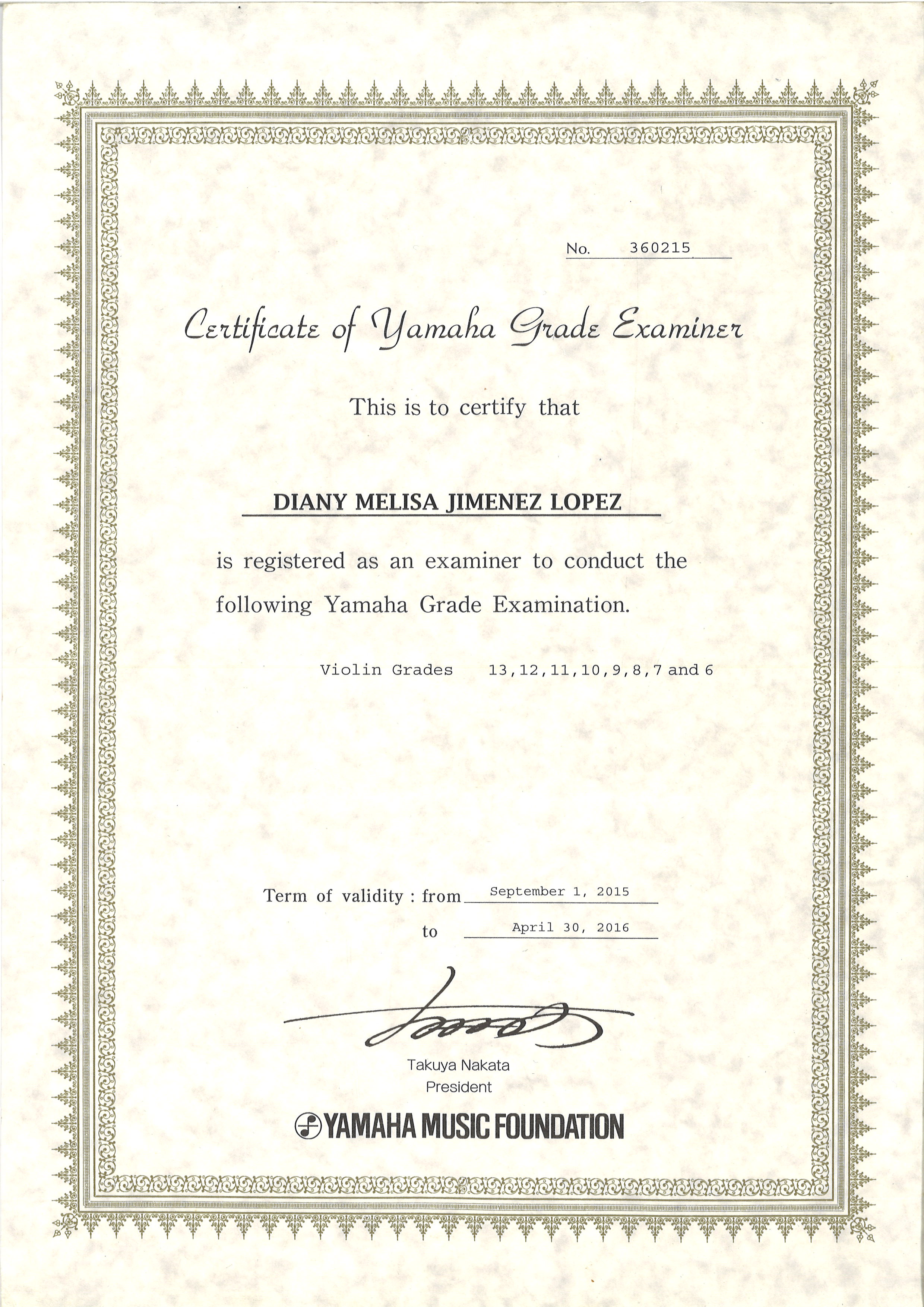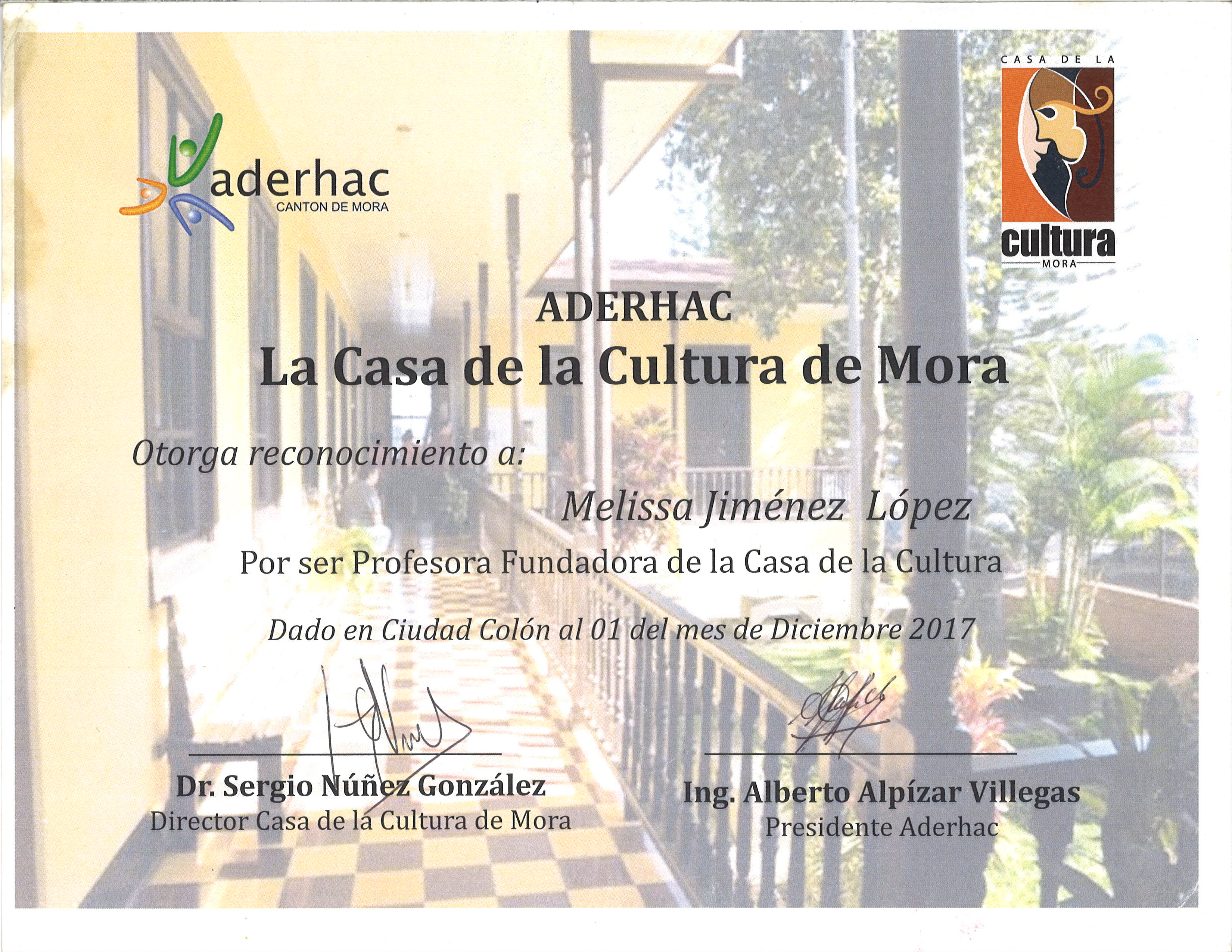 • Received recognition as a Founder Professor of the Strings Section at the House of Culture of Ciudad Colon, San José, Costa Rica in 2019.