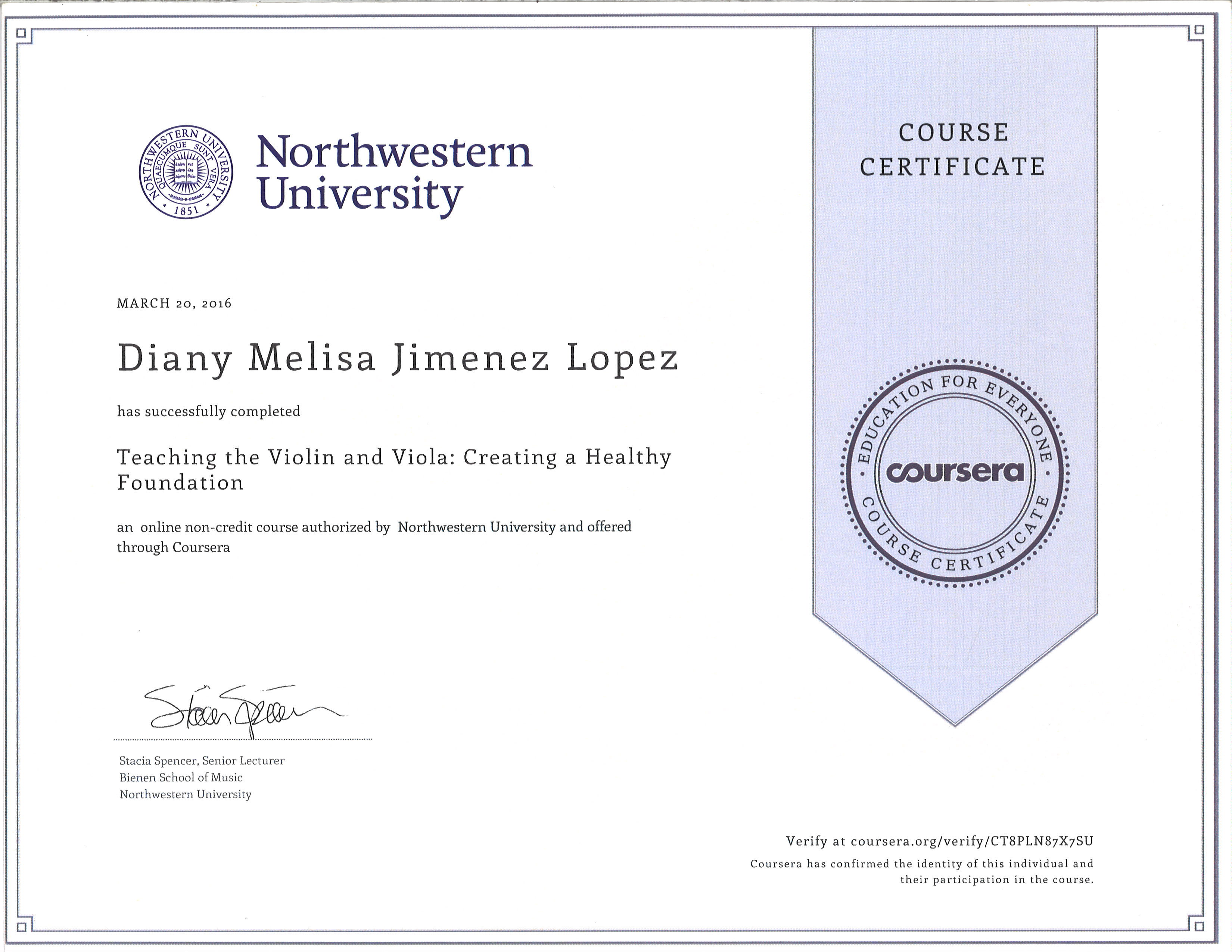 • Graduated with a degree in Violin Performance from the University of Costa Rica in 2010.