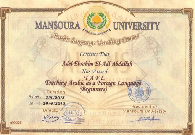 CERTIFICATE IN TEACHING ARABIC AS A FOREIGN LANGUAGE, 2013