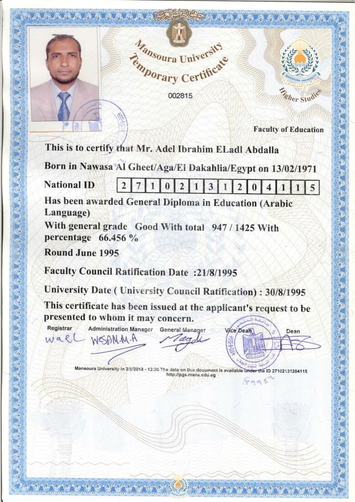BACHELOR OF ARTS (B.A.) IN ARABIC LANGUAGE, 1992