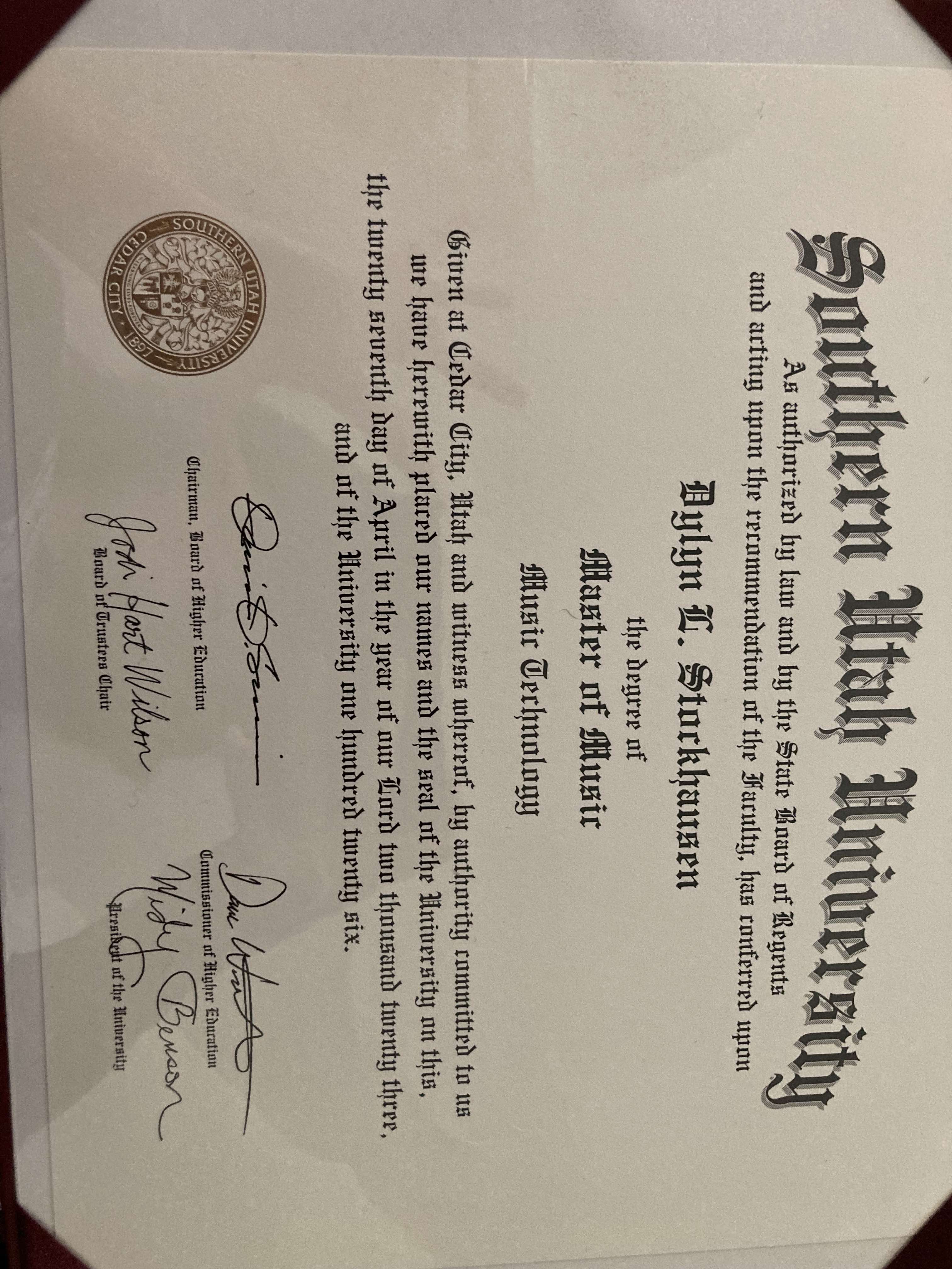 Master's Degree- Music Technology- Southern Utah University