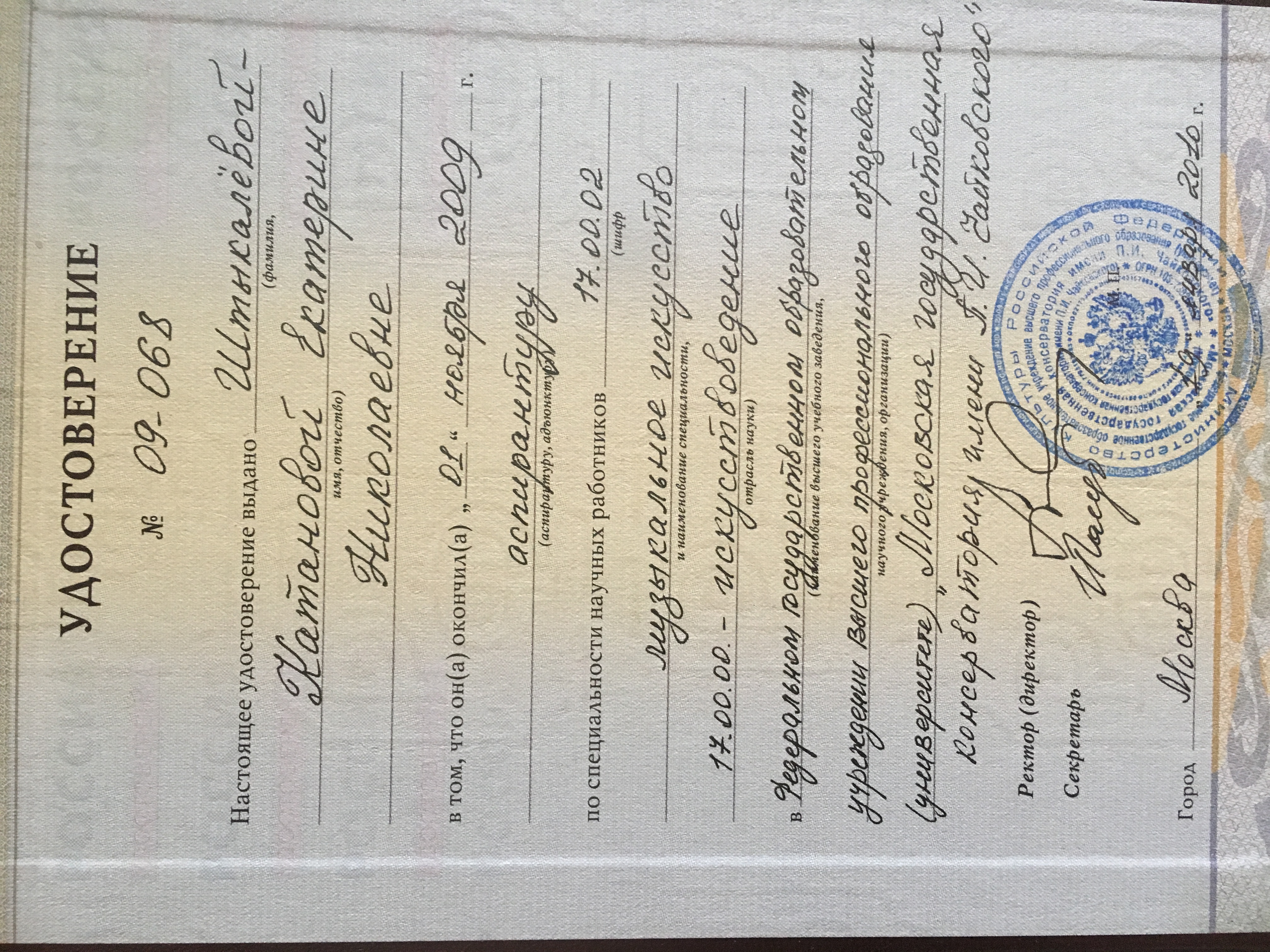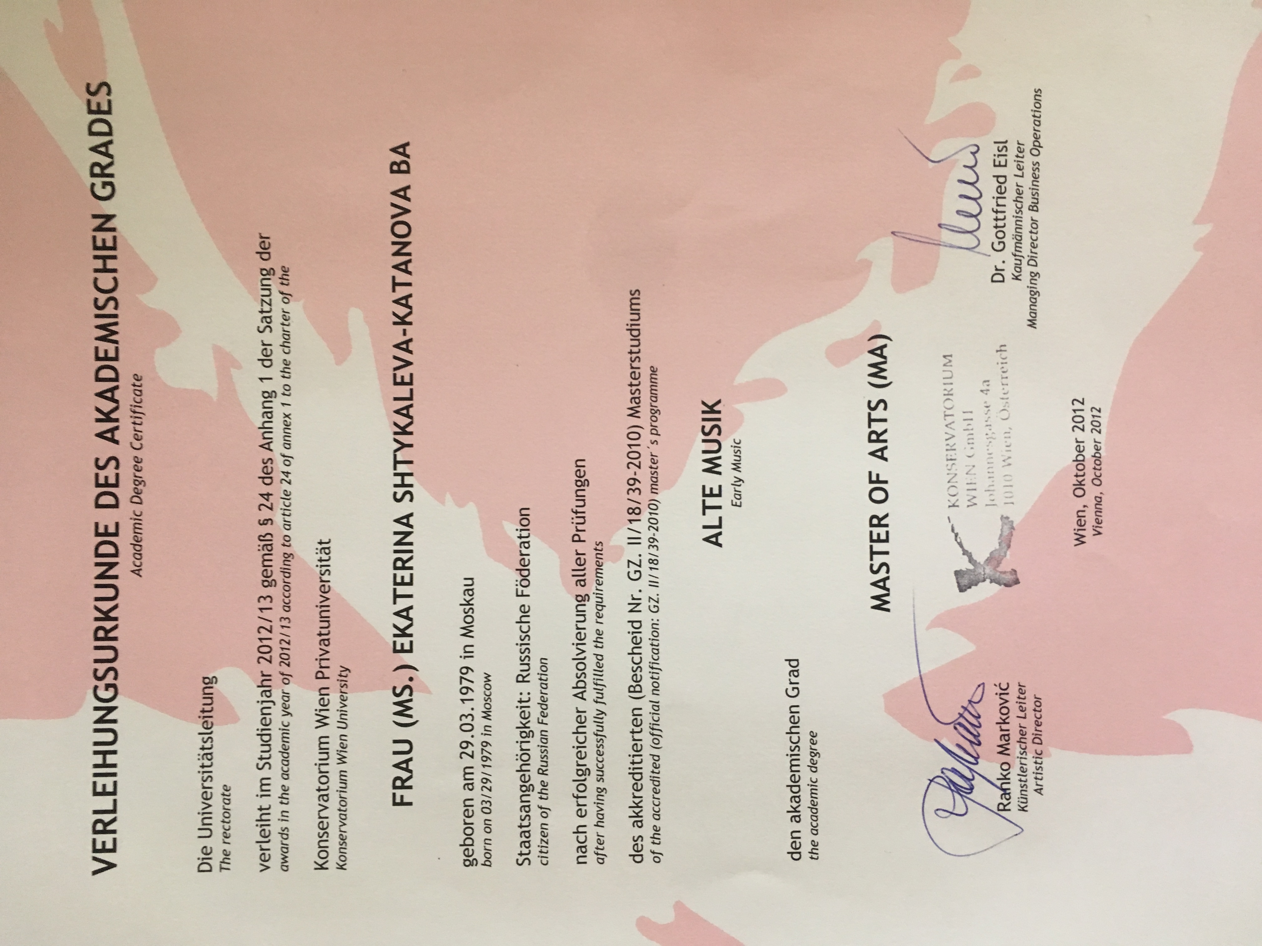 Moscow Tchaikovski Conservatory - Master, Phd in chamber music