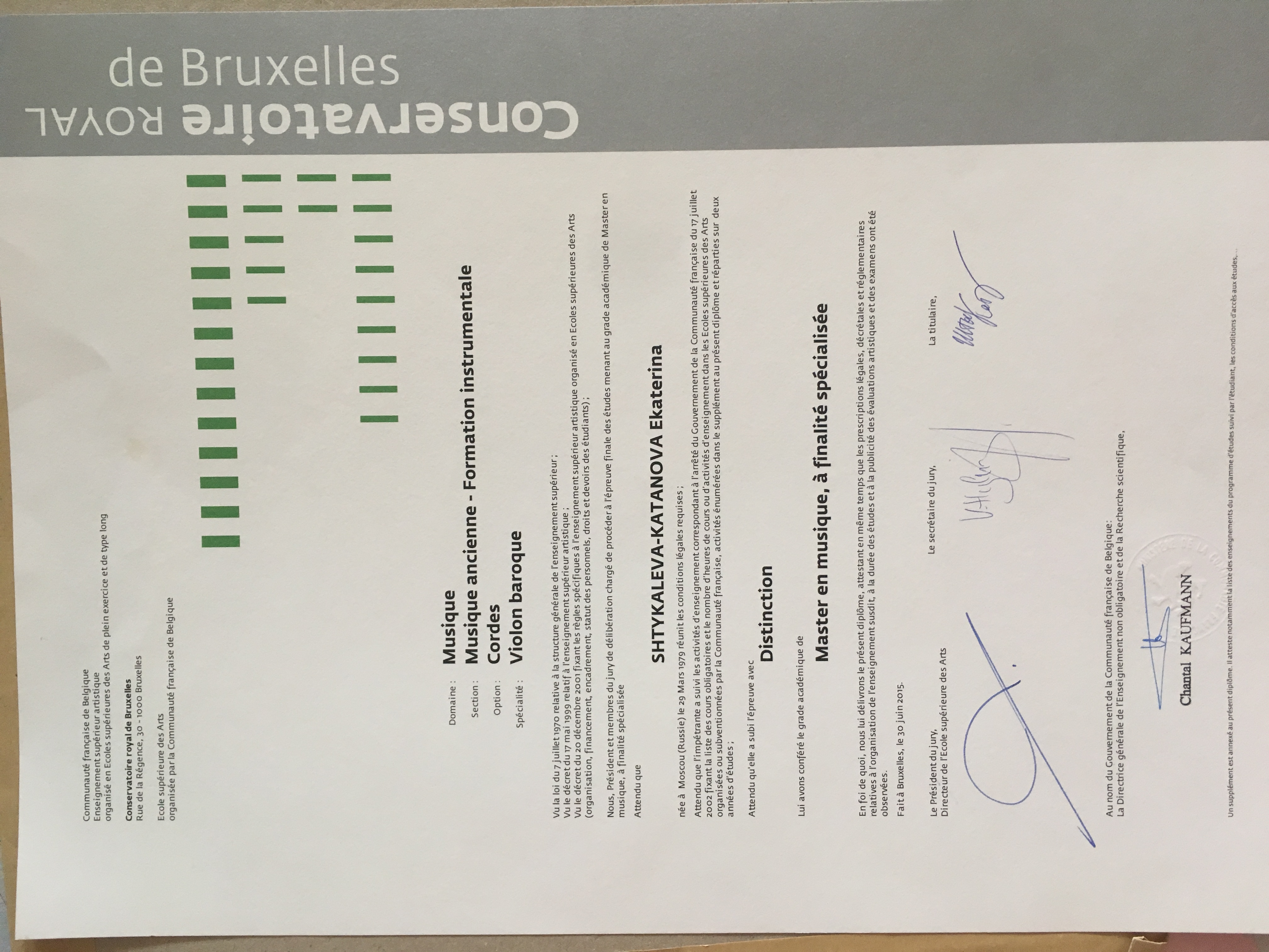 Conservatoire royale de Bruxelles - Master with distinction