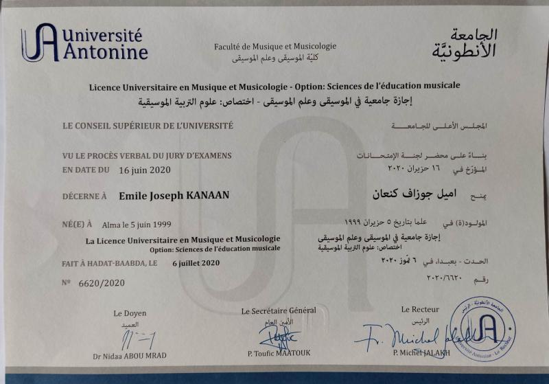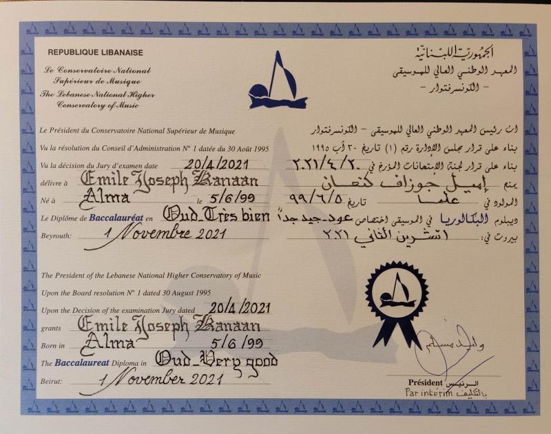 Diploma (Baccalaureate) in Oud – Lebanese National Higher Conservatory of Music