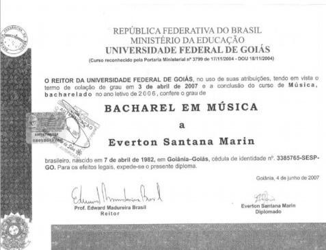 In 2007, he finished his Bachelor's Degree in Music at the Federal University of Goiás, being a student at the teacher Maria Helena Jayme. In the same year he was awarded a full master's scholarship at the University of Wyoming in Laramie, where he earned his Master's degree in Piano Performance with teachers Teresa Bogard and Rubia Santos. In the US he performed several recitals in different cities including Chayenne, Grand Forks, Atlanta and New York at the renowned Carnegie Hall Theater. He has courses in the field of composition with renowned