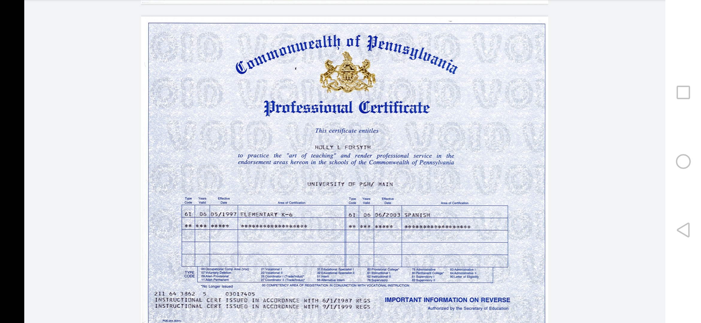 Teaching Cetificate Spanish K-16 for Pennsylvania