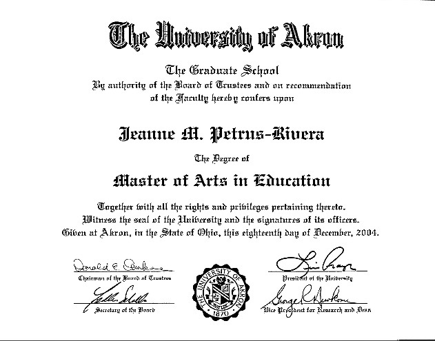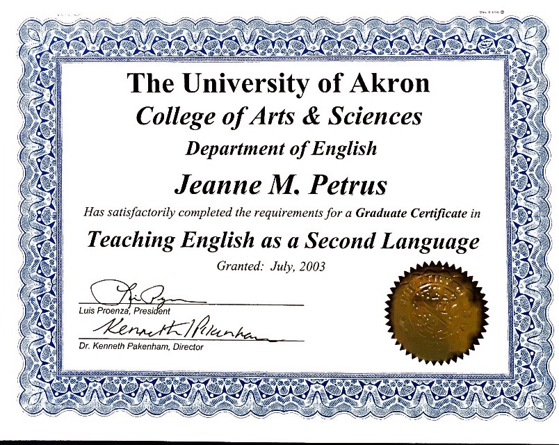 Master of Arts in Education with Graduate TESL Certificate (University of Akron)