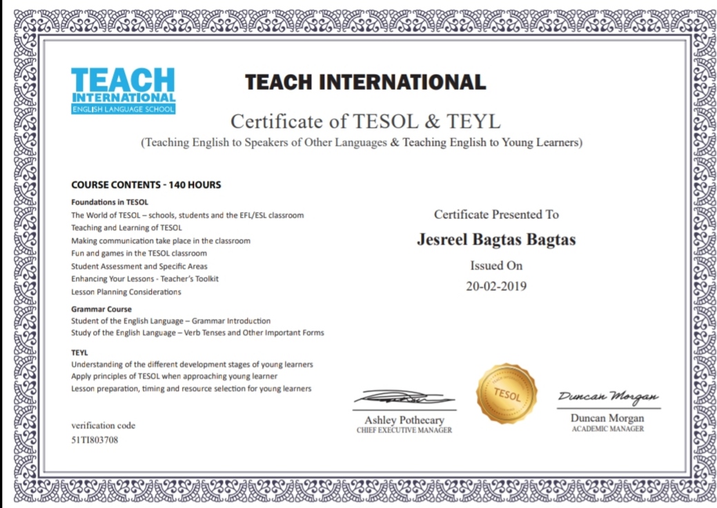 Hello there! ๐ Ready to embark on a language journey? I'm Jesreel, a passionate English educator with 6 years of teaching expertise. ๐ Certified in TEFL/TESOL and a licensed professional teacher, I specialize in crafting engaging and interactive lessons specifically designed for children. ๐งก