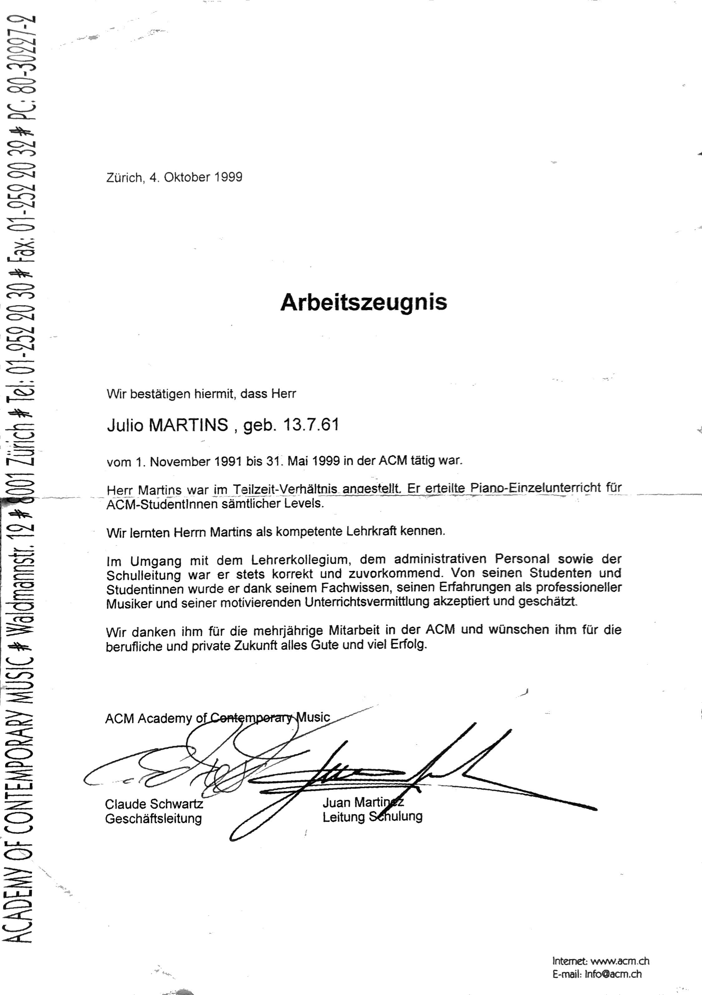 - I taught piano students at all levels at the Academy of Contemporary Music (ACM) in Zurich, Switzerland for over 8 years.