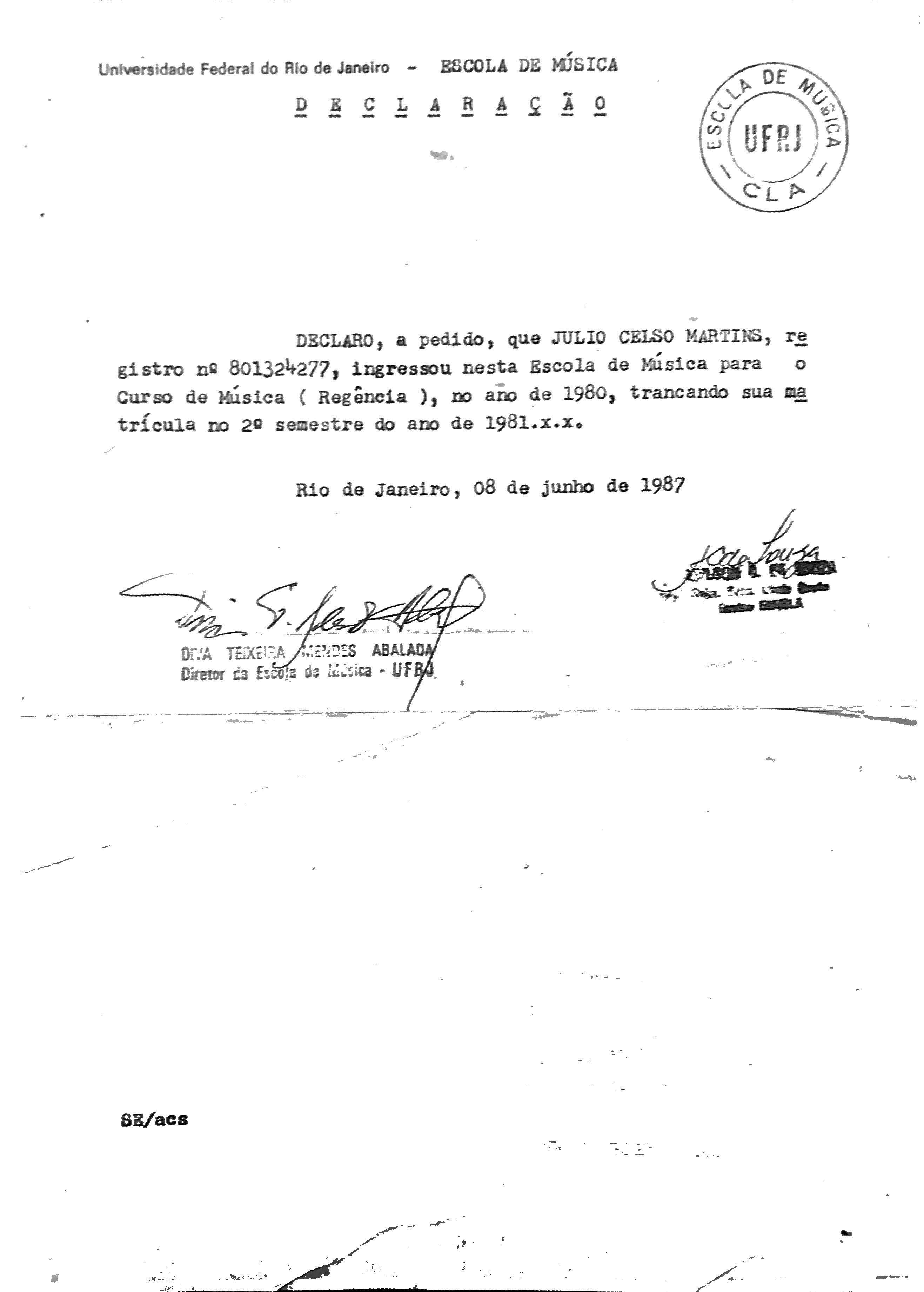 - I studied at the Universidade de Música UFRJ also in the State of Rio de Janeiro in the REGENCY course.