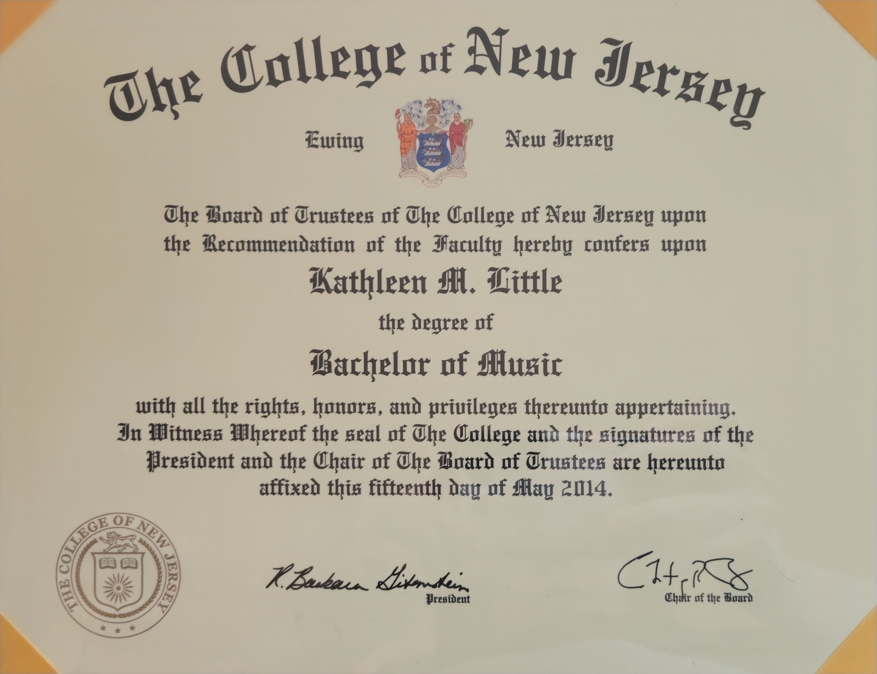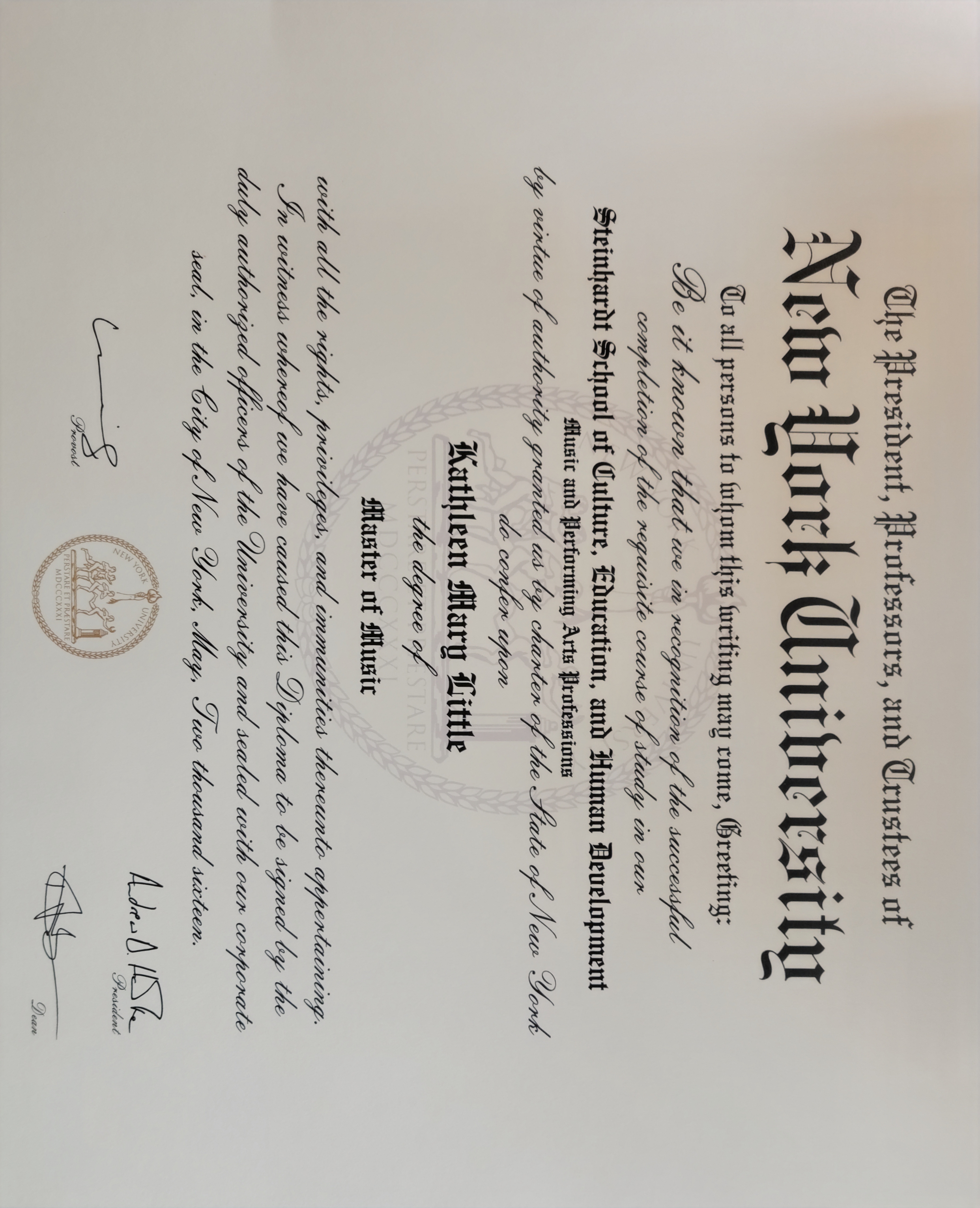 Bachelor's Degree in Music Performance from The College of New Jersey Master of Music from New York University