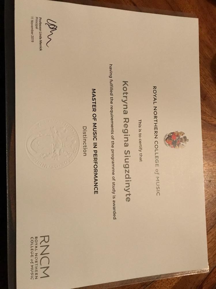MMus (Hons) - Distinction - Royal Northern College of Music