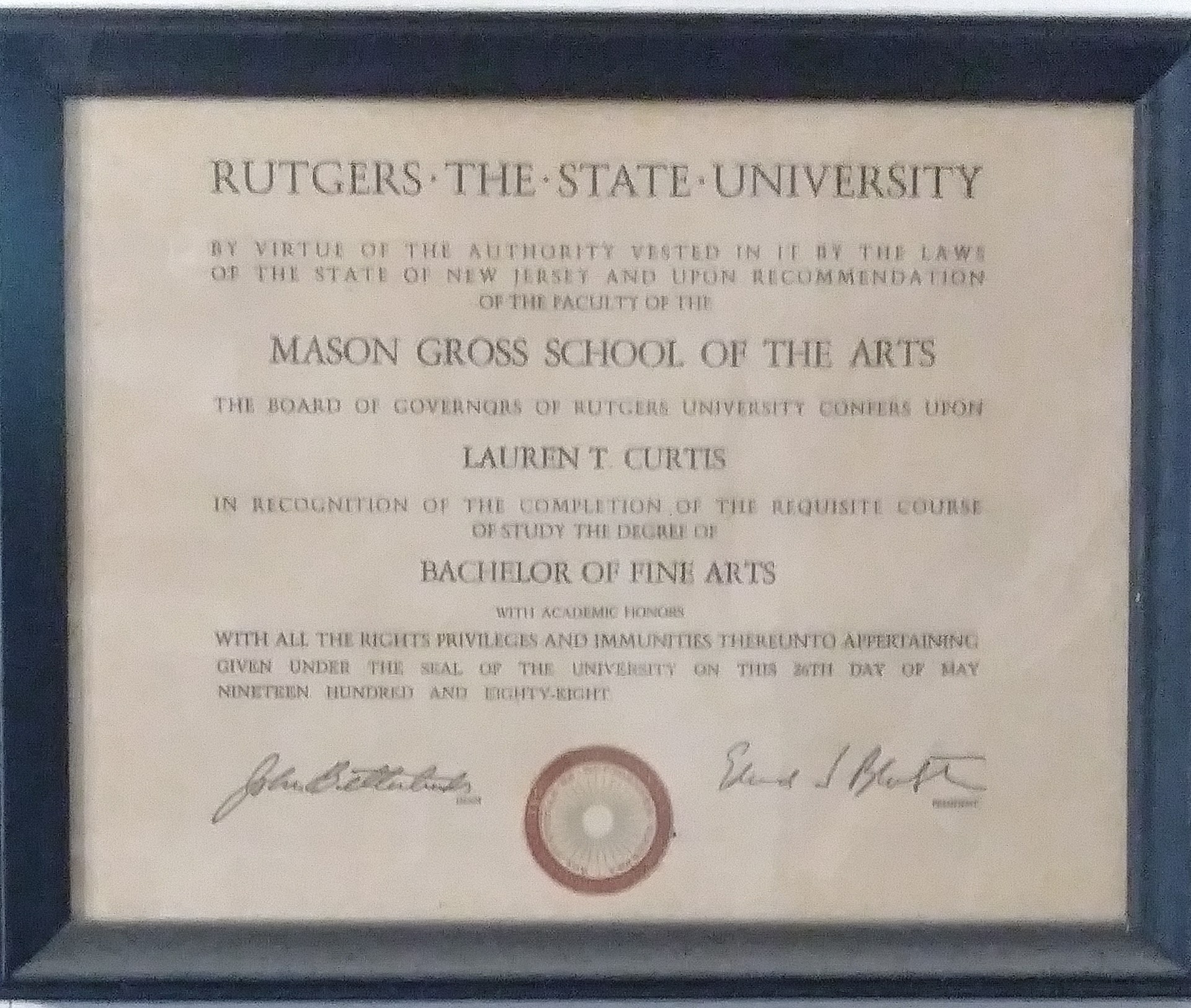 BFA from mason Gross School of the Arts at Rutgers, 1984-1988