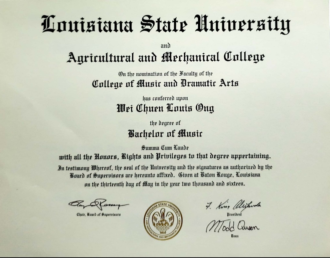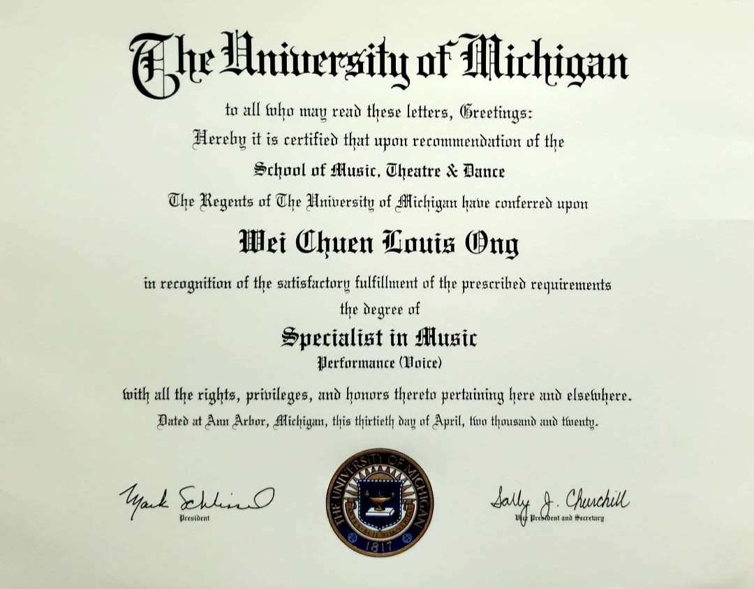 Baritone Louis Ong completed his Specialist in Music degree in Vocal Performance at the University of Michigan in 2020. He previously earned both his Master of Music and Bachelor of Music degrees from Louisiana State University.