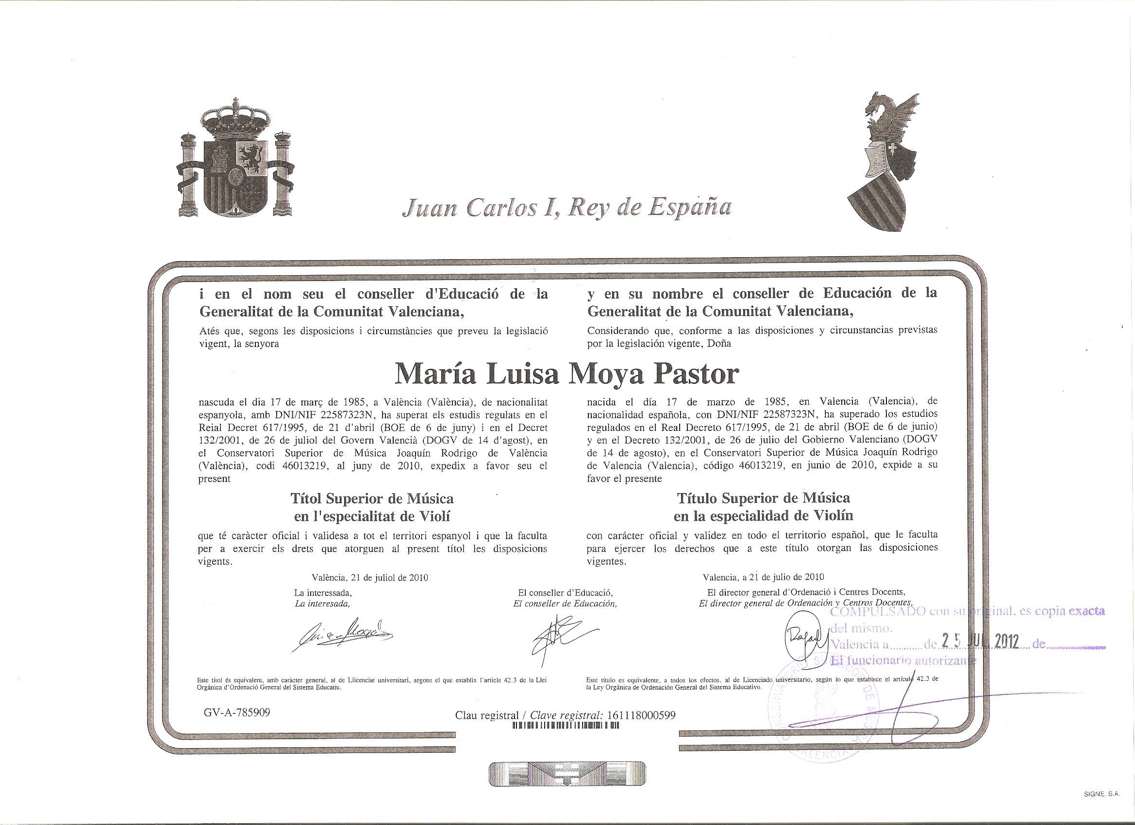 Bachelor degree in Violin