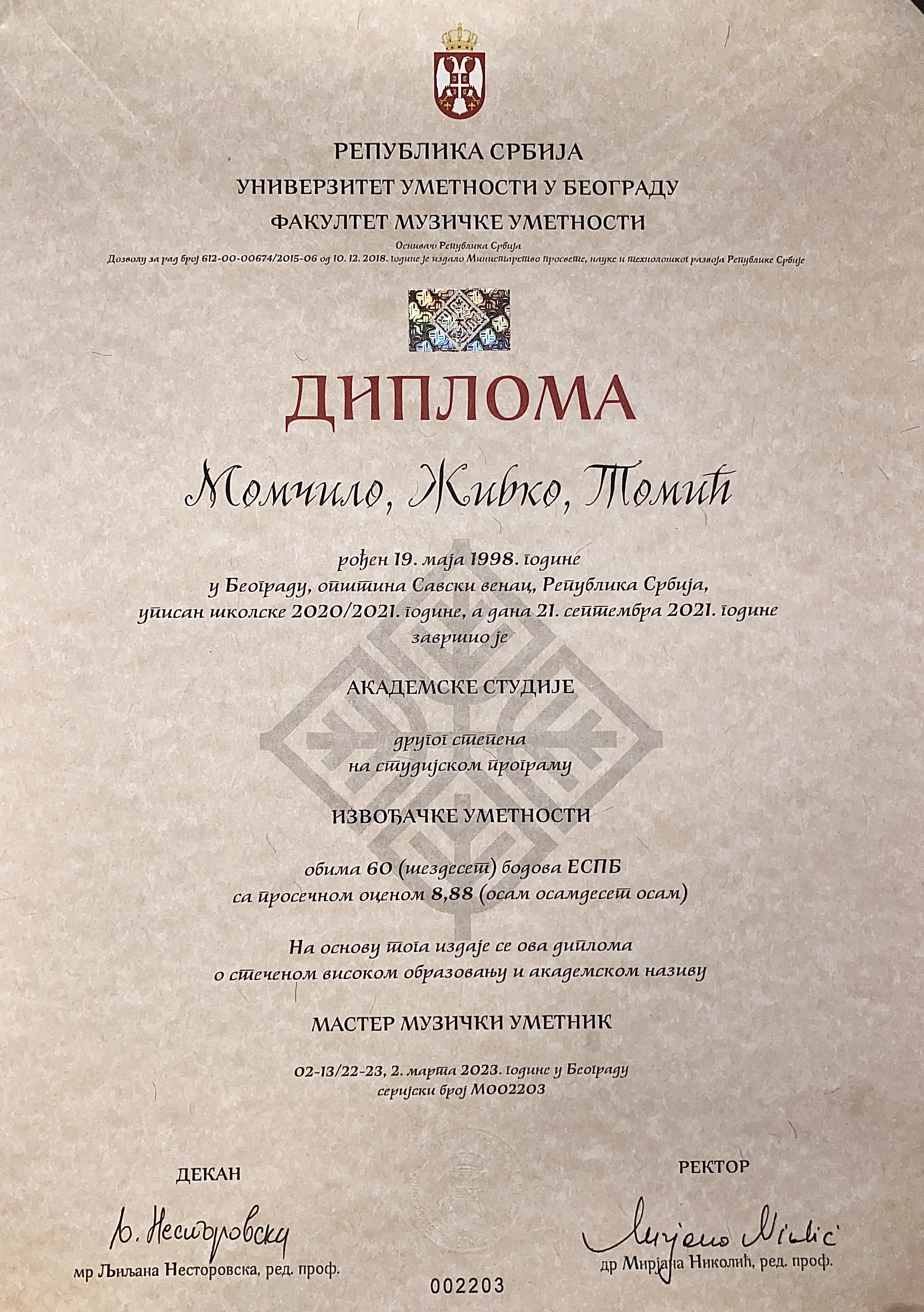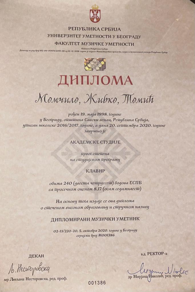I completed Bachelor and Master piano studies at the Faculty of Music in Belgrade.I also attended Master's studies in Germany for one year at the Musikhochschule Lübeck. I am currently working as a Piano Professor at the State Music School in Serbia. I have participated in over 30 international piano competitions and have over 25 first prizes. I am sure of my pianistic skills and I am sure that future students will be convinced of that.
