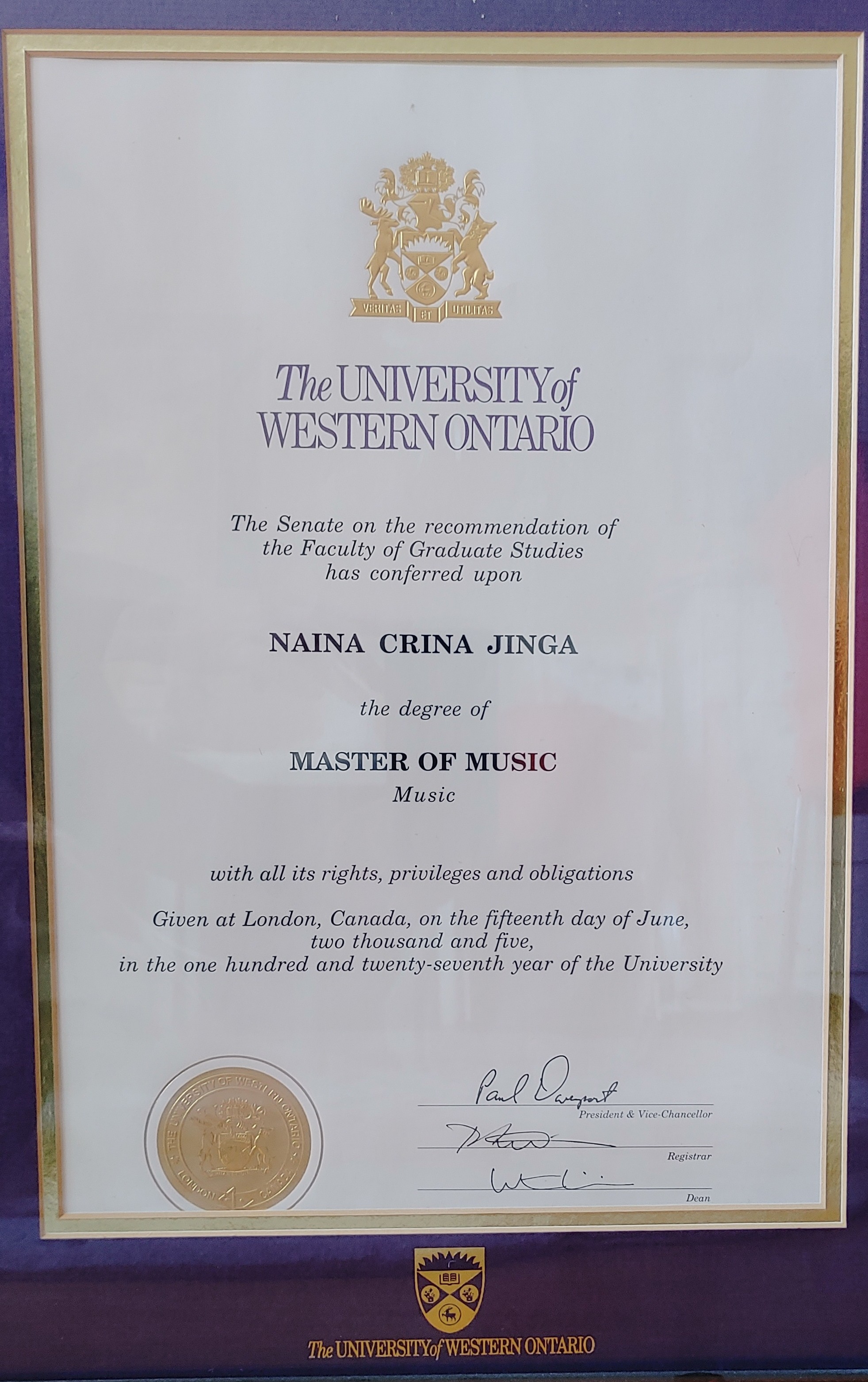 Master of Music in Music Composition 2005