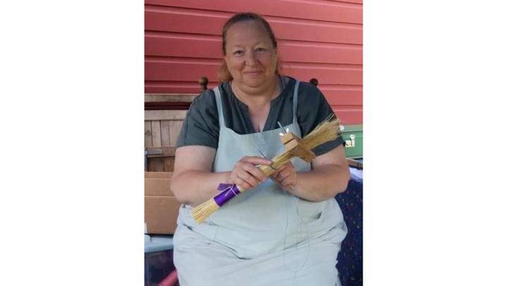 In May of 2024, Nancy began adding a line of wrapped handled whisk brooms, naming them Sally brooms in memory of her dear friend who had recently passed. She has also made great strides in her teaching skills not only with teaching larger numbers of students at a time but also teaching more complicated techniques to beginning students.