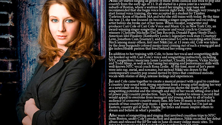 Nicole is an amazing! Our 8 year old started singing lessons with her and being a beginner she was self-conscious and a little shy the first day. Especially having someone judge her skill and voice but Nicole made her and us feel great immediately. So friendly and personable. By lesson two-already out if her shell! I really believe she has a chance to make progress with her voice and self confidence. I would most certainly recommend her to anyone at any level. She definitely is as good as she teaches. Her sample cd is no doubt radio worthy. Even if you are not sure about taking singing lessons. Price wise you can't go wrong! You won't find anyone comparable at her level. Thank you Nikki Jay voice studios!
