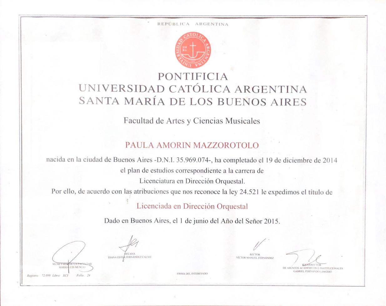 Graduate in orchestral conducting from the Universidad Católica Argentina.