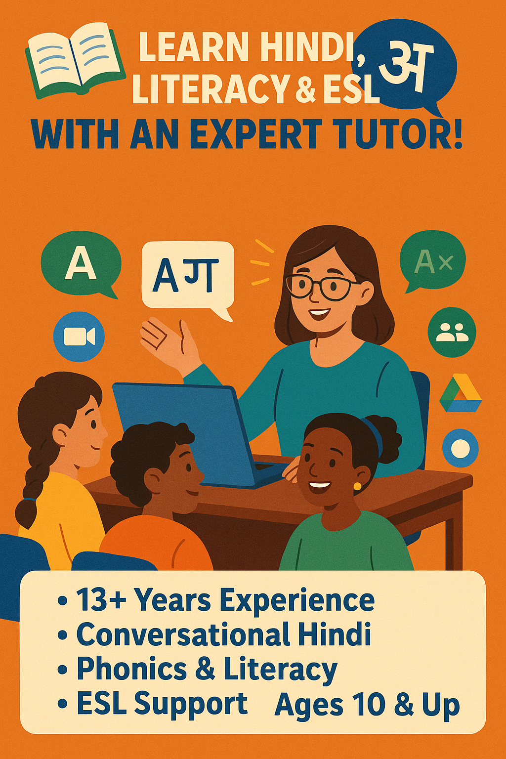With over 13 years of experience teaching Hindi and more than a year specializing in phonics, literacy, and ESL, I bring a passion for language and a deep understanding of how students learn best. Whether you're just beginning your Hindi journey or looking to boost your fluency, I offer engaging, student-centered lessons tailored to learners aged 10 and up.