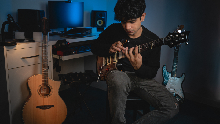 Hi! I’m Priyanshu and I love the guitar. The guitar is a simple & beautiful instrument, and with the right guidance, playing guitar will come as naturally to you as walking. I have been playing guitar professionally for 10 years, and I got Grade 8 certified in Electric Guitar Performance from Rockschool London in February 2021.