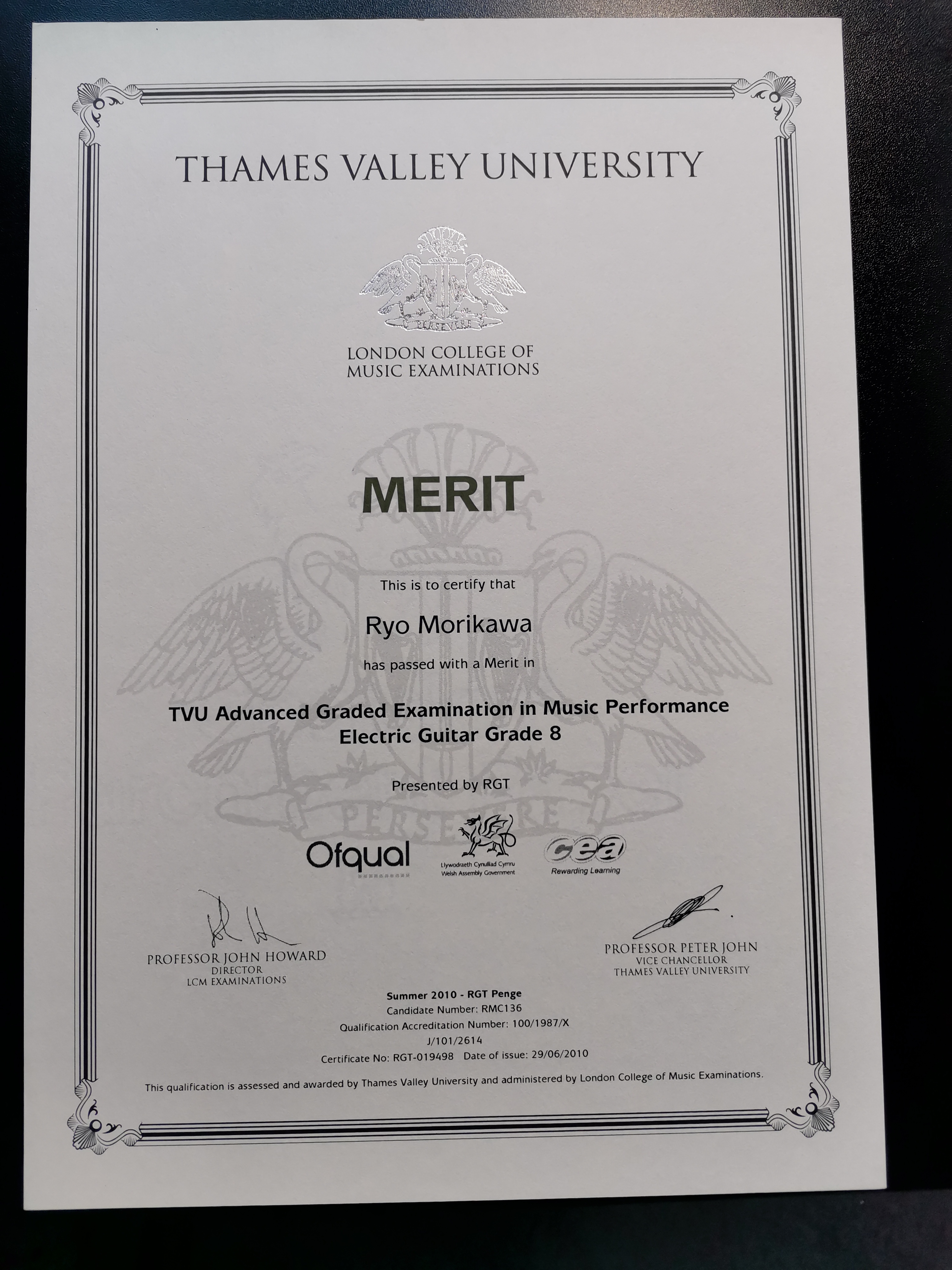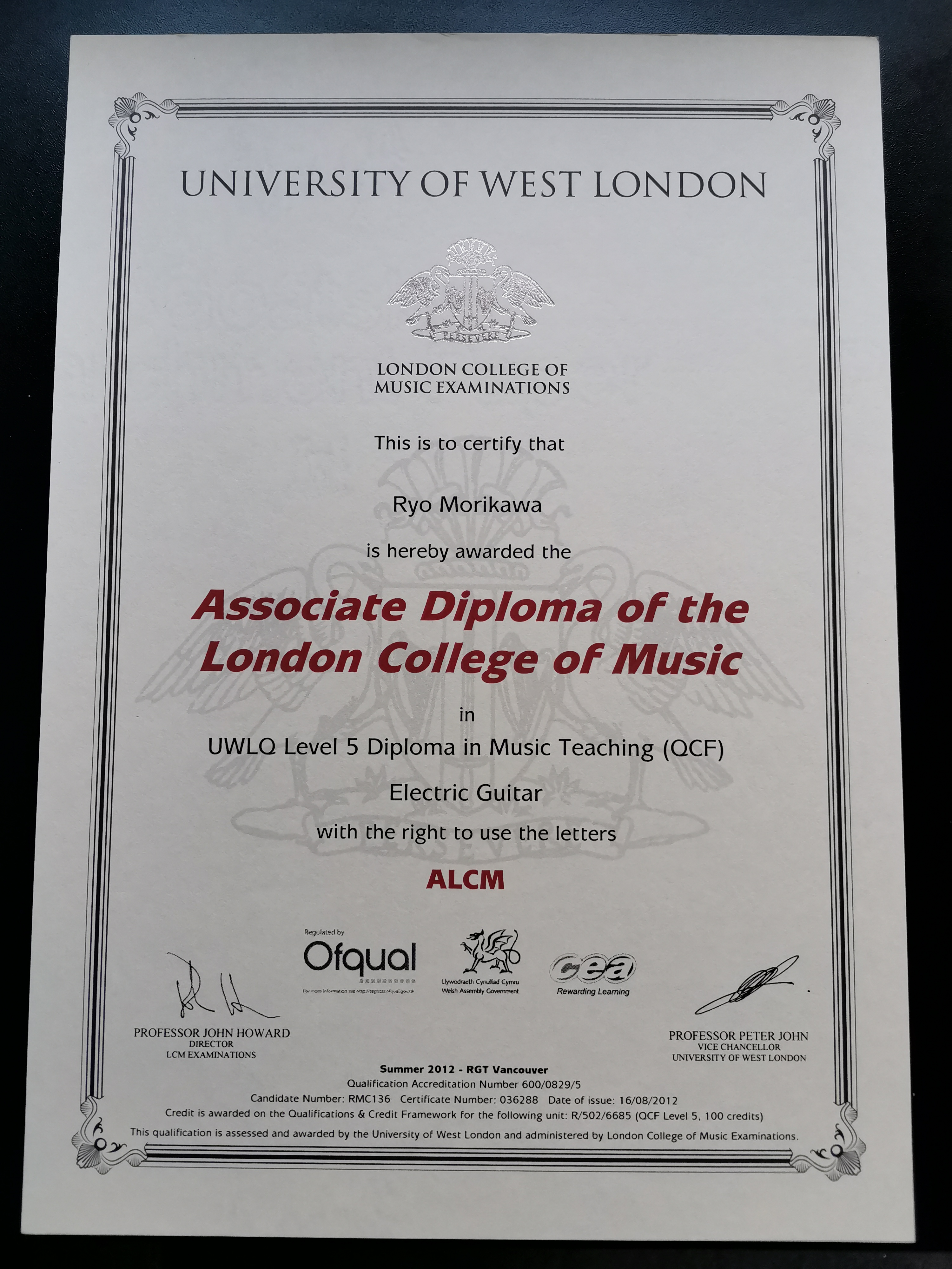 ・Diploma of the London College of Music in Electric Guitar Teaching