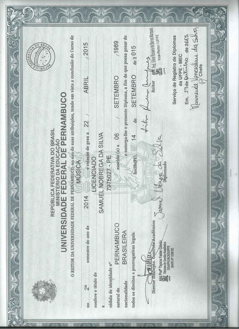 Graduated in Music at the Federal University of Pernambuco (UFPE).