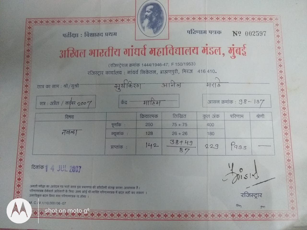I have completed by graduation From Akhil Bharatiya Gandharva Mahavidyalaya , head Office , Miraj, Maharashtra, India. these certificates are in our state language of Maharashtra...so this is in Marathi language. Now I m working in two reputed institutes of Mumbai (1) Shree Vallabh Sangeet Ashram, Sion, Mumbai... Since 2012; and (2) Fine Arts Society...Chembur, Mumbai...Since 2018.