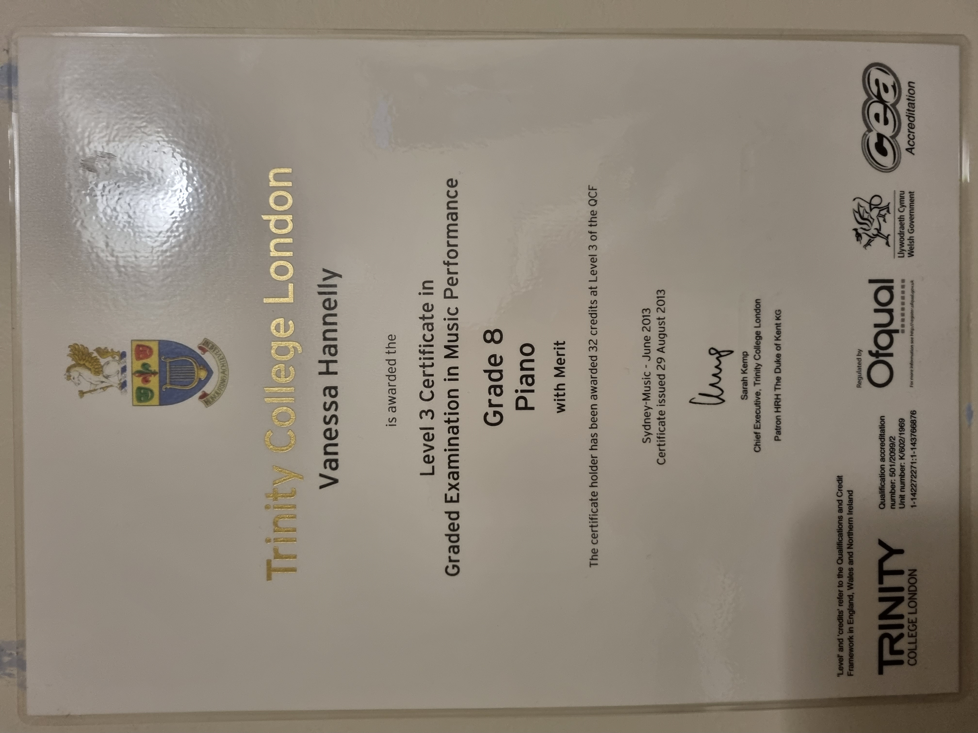 I received my grade 8 piano from Trinity College of London in 2013. I received my grade 5 theory from AMEB (Australian Music Education Board) in 2010.